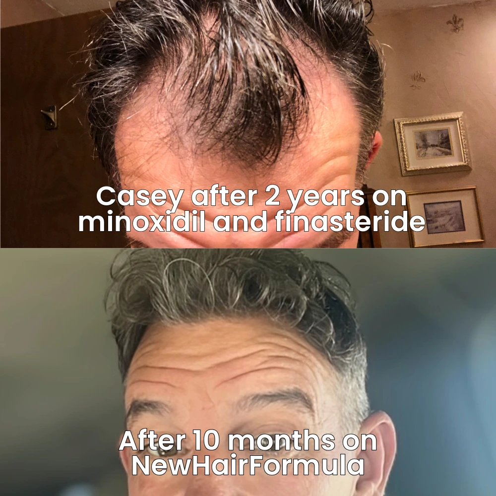 “I tried everything to stop my hair loss including minoxidil, finasteride, and laser therapy. But year after year it just kept getting worse. Now, just 4 ½ months after starting NewHairFormula, I can see that this is a game changer! There is nothing else like this on the market!”